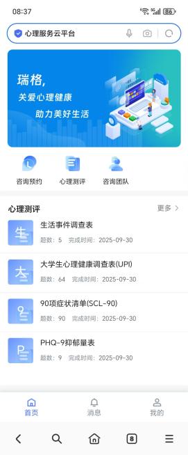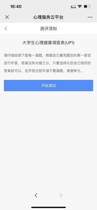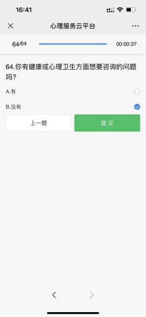 量表需依次点击作答,每项量表作答完成,点击“提交”后,返回首页即可选择其他未作答量表。全部量表作答完成,心理测评栏目下显示“暂无数据”,即为普查完成。