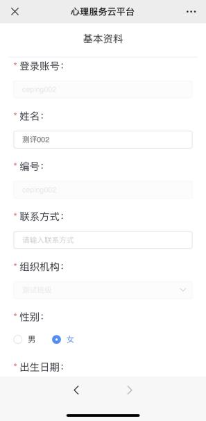 进入平台后完善个人信息(标*为必填项),完成后点击提交即可进入心理健康普查界面。